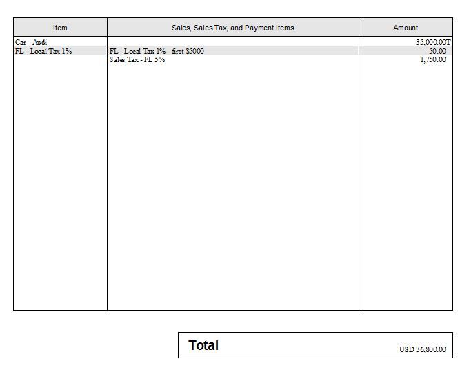 So 10000 x0975 or 975 97500 in sales tax. Under Florida state law the Florida Department of Revenue collects 6 sales tax on 28000 which is the advertised full purchase price of 30000 minus the 500 dealer discount and 1500 trade-in allowance but not minus the 3000 manufacturers rebate. It should be noted that the local tax is only applied to the first 5000 dollars of the cost of the vehicle.